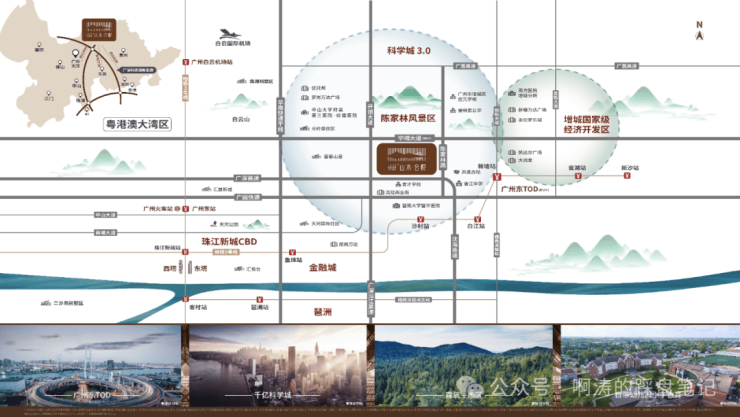 1、【区位优势】一路之隔即是黄埔科学城,30分钟瞬达天河,板块内唯一不限购的至近城央墅;