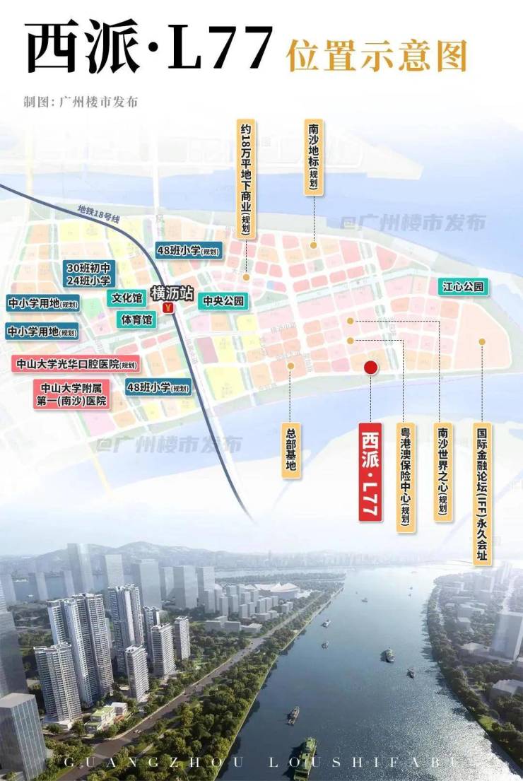 横沥岛尖,位踞世界南沙明珠湾⾦融核⼼区,定位全国⾸个国际⾦融岛,总投资超千亿元,基建投资是灵⼭岛三倍多,未来将承接粤港澳⼤湾区⾦融枢纽的重要职能。