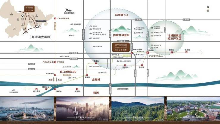 知名学府为邻项目自带9班幼儿园、24班小学教育配套,周边现已落成或在建近20余所优质学校:约2.5公里:合生育才中学、市二中应元小学,斐特思公学等:5-10公里内:美国格兰纳达山特许学校,修仕倍励实验学校,广州南方中英文学校等学校