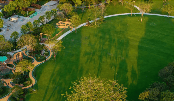 园林不再是平面单一的,约1.3万㎡中央园林,形成一轴两环五核心的景观节点,与金山湖的自然生态遥相呼应。更立体,与归家、观景、运动等等场景“嵌套”。