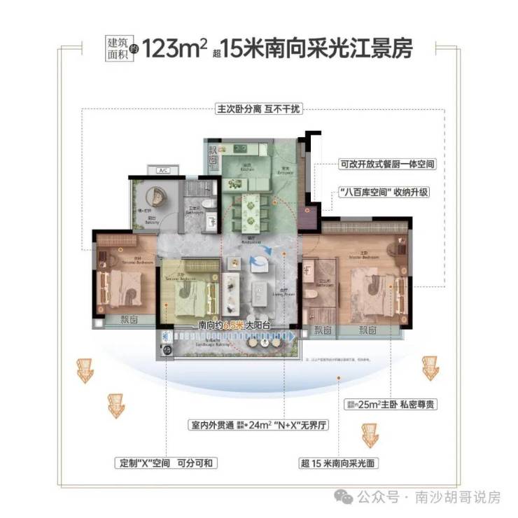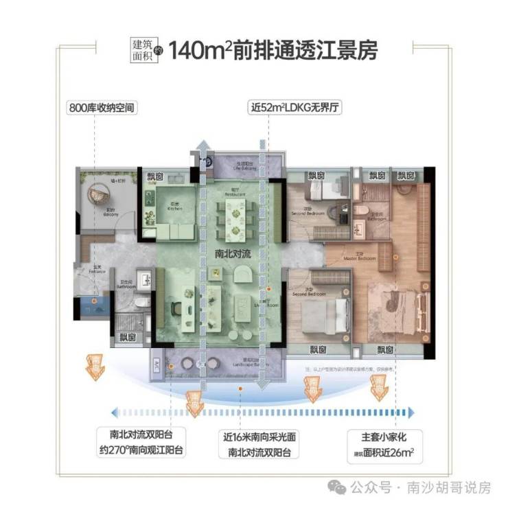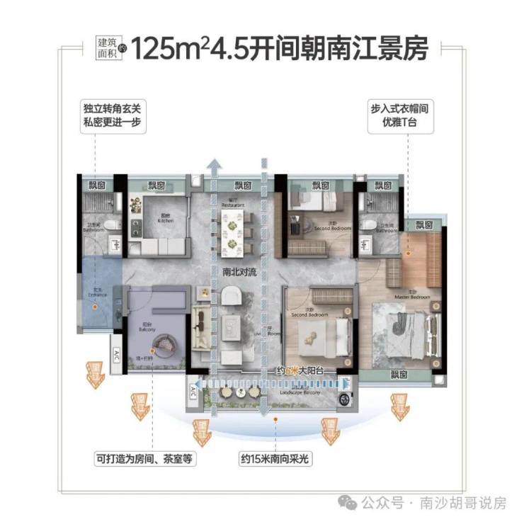真江景当南向:地处明珠湾出海口,户户朝南望江;