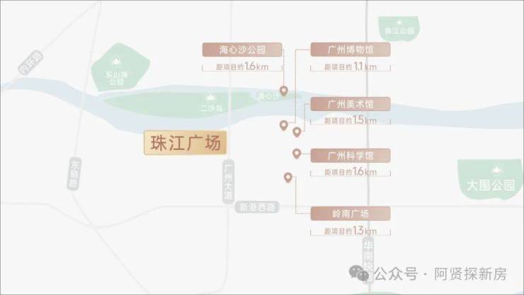 尽享岭南广场(约1.3公里)、广州美术馆(约1.5公里)、广州科学馆(约1.6公里)、广州博物馆(约1.1公里)、海心沙公园(约1.6公里)等休闲配套,奢享文化休闲慢生活。