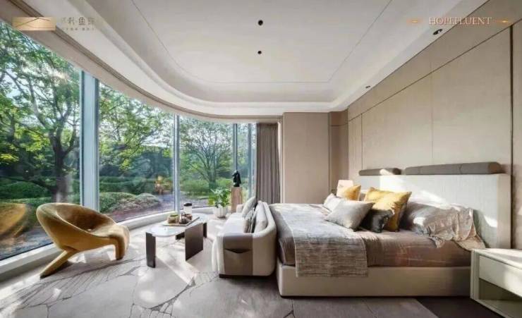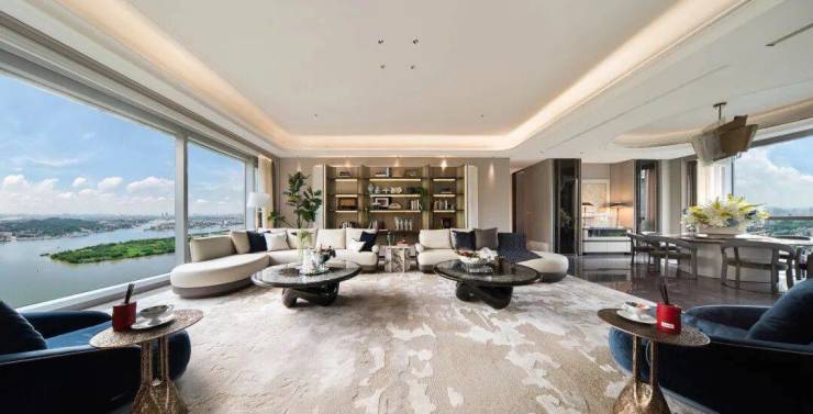 保利鱼珠岛创新性地采用了这种“雁字形”建筑形体,摒弃北向户型,所有住宅均朝南,确保户户直面珠江入海口的壮丽景观;圆弧转角设计打破墙体束缚,客厅、主卧及次卧均可实现270°环幕观景,尽览三江汇流、城市天际线与江海交汇的震撼视野,这个确实比较的666;全玻璃幕墙搭配金属饰条,在阳光下映射粼粼江影,动态美学与珠江新城、金融城天际线形成呼应,彰显现代建筑与自然景观的完美融合。