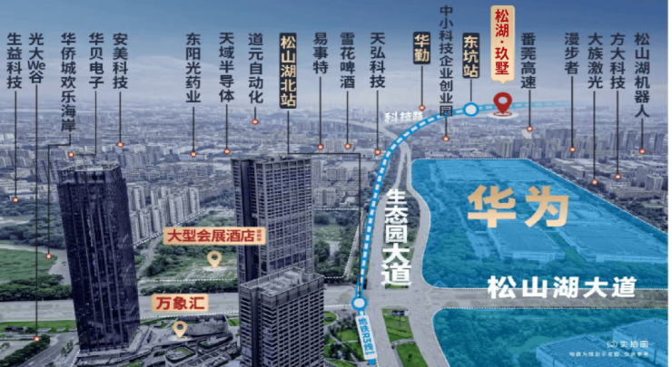松山湖多年来,遵循一路向北扩容。而我们的这位商墅破局者,就诞生于松山湖北上扩容的必经之地。