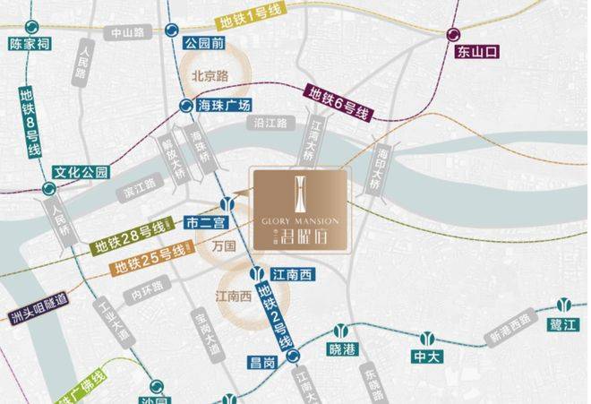 市二宫作为海珠与越秀的交界核心,具备广州内城罕见的立体交通资源。项目紧贴市二宫站,是广佛线未来延伸段与现有2号线的重要转换点。依托地铁2号线,可轻松抵达北京路、海珠广场、江南西商圈,同时无缝转乘珠江新城、琶洲、天河等多个核心板块。在大交通体系发展趋势下,市二宫区域的轨道通达力预计将进一步增强,这也为项目的保值能力及未来升值潜力奠定了坚实基础。