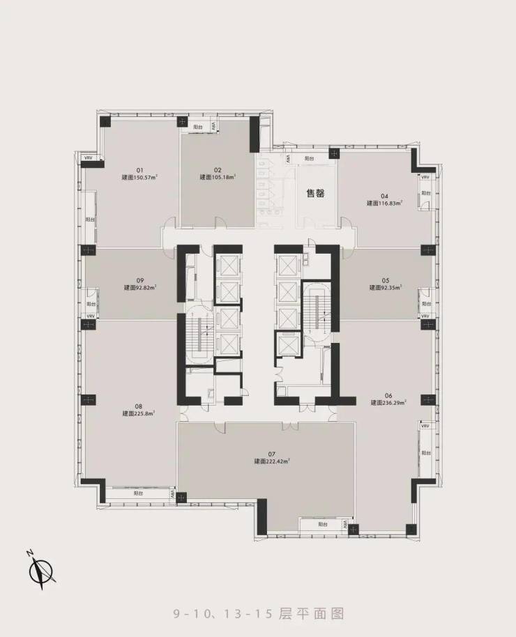 约93-235㎡定制4.5m云端公馆,带阳台8梯9户,奢享尊贵,无忧高效,延伸生活百般想象。