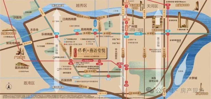 项目坐落于工业大道中,背靠珠江后航道,傲立于海珠新活力文商旅融合圈与广州市“首个”后航道服务型制造创新带交汇的核心地带,海珠后航道将成为海珠未来唯一连片开发的豪宅板块。