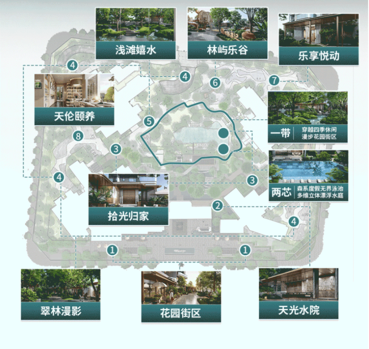 融入沉浸式立体花园设计理念,叠水景观、花园林境、树影婆娑、天光水色…