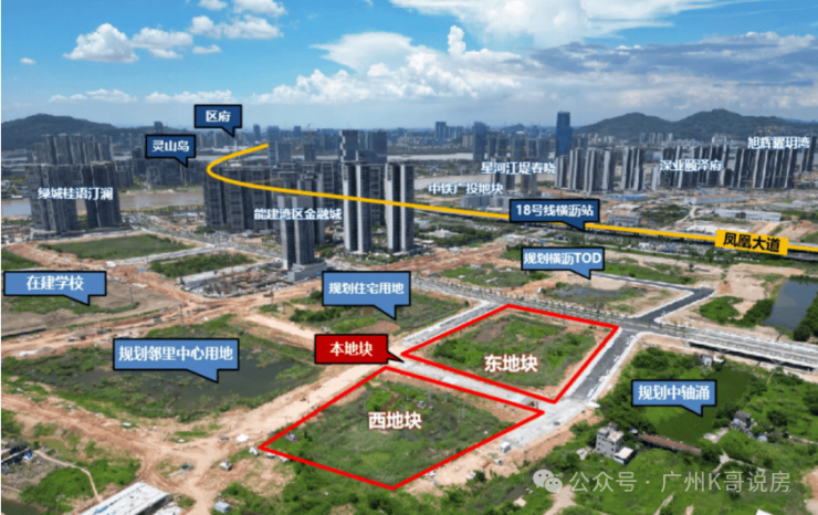 地块北面是能建·金融城,南面是铂玥明珠ONE,东面是横沥TOD地块。