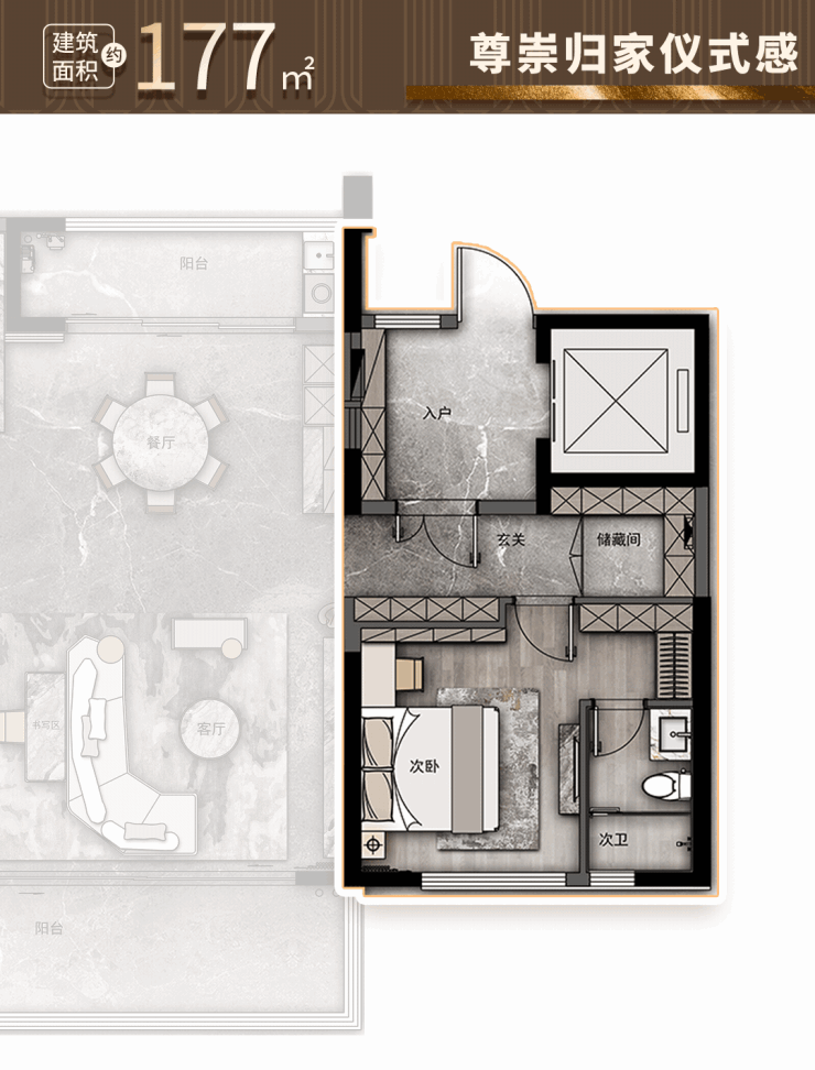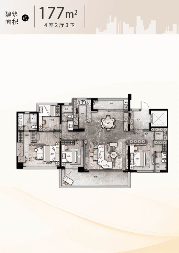 于建面约177㎡,可以看到远洋对人性化空间的细致观察。