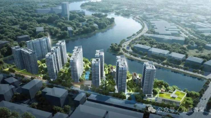 户型排布从石榴岗河自东向西依次升高,保证了约300米宽的生态水景面。