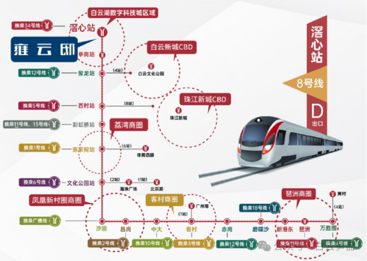 随着去年底广州白云站的开通,作为广州目前最大的交通枢纽站,串联全国各地,白云湖板块的交通越发便利。招商雍云邸业主乘坐家附近的8号线,只需要4站即可直达广州白云站(地铁石潭站),未来白云站有七条地铁线路汇集中轴换乘,交通将更加便捷。