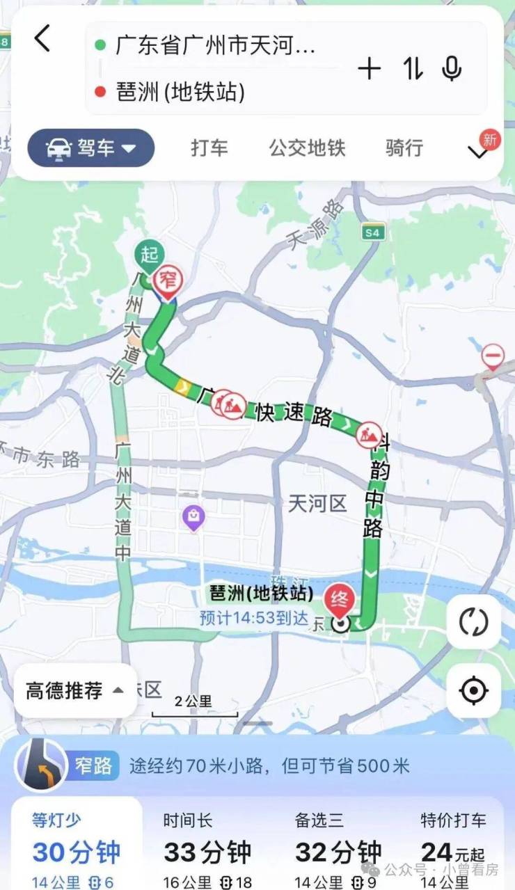 自驾琶洲:走广州大道北转广园快速路在转科韵中路即可到达琶洲,全程15公里耗时32分钟,打车24块,地铁11站耗时34分钟,18号线开通前往琶洲仅3站可以大大缩短通勤时间。