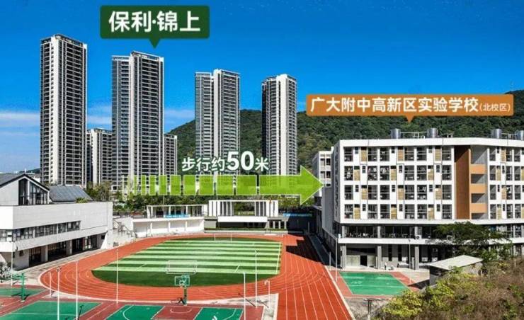 自身配建12班幼儿园,小区旁边有所广大附中高新实验学校---小学+初中,且保利锦上已经纳入该校招生范围了,学校距离锦上只有50米。