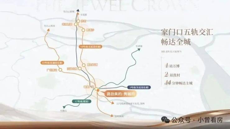 五轨交汇,家门口地铁3号线/18号线/22号限/17号线(在建)/3号线东延线(在建),1站万博、2站珠江新城,直通南沙、联动广/佛/莞的核芯节点,畅享湾区1小时生活圈。