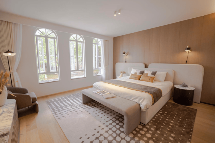 在室内空间设计上,用心可见一斑。每间卧室均为套房设计,赋予了每一位家庭成员更多元、更私密的生活享受。阔绰主人套房,卫浴室、衣帽间一应俱全,给予你星级酒店总统套房般居住体验。