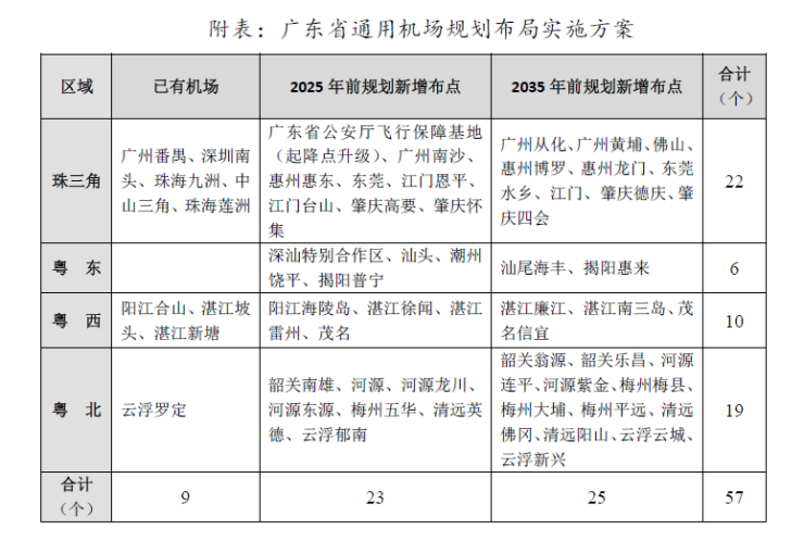 同时,据广东省发改委消息,广东省近日制定《广东省通用机场布局规划(2020-2035年)》,规划期(规划近期目标年为2025年,远期目标年为2035年)将新增通用机场布点48个,其中广州从化也在列。