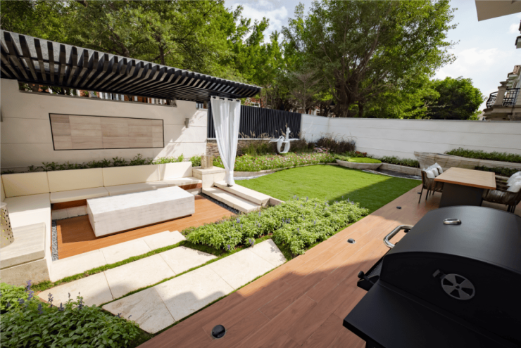 同时,每一栋都拥有私家庭院,你可以根据自己所喜,开辟属于自己的小天地。可以是小花园,满植玫瑰、月季、海棠,让花香飘入屋内;又或是搭个花架,待夏天爬满葡萄藤时,便可以在果藤下看书、品茗,享受片刻的静谧。闲时邀上三五好友,还可开启一场热辣BBQ。
