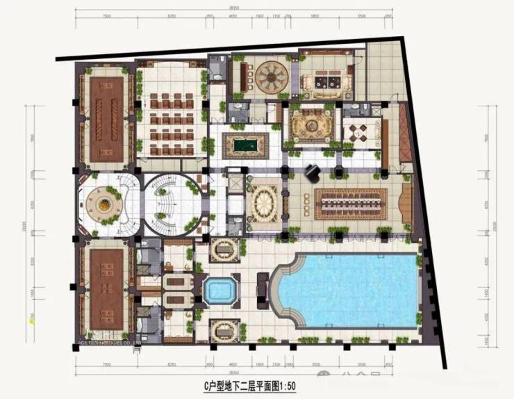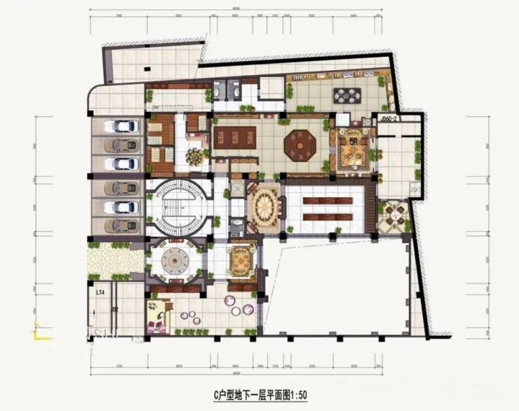 别墅更超值和充满无限可能的是地下一层与地下二层,单层1200-1300㎡的挑高地下空间,足以构建敞阔的殿堂级会所和星级休闲空间。