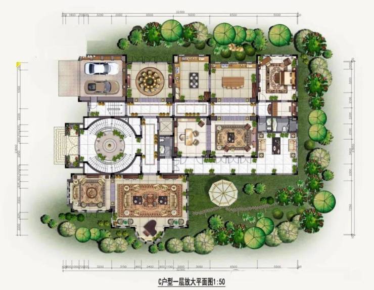 别墅一层为花园庭院和父母套房、客房,可设置中西厨房、客厅、小餐厅、书房设计,一家人各得其所,各有所乐。阔绰的挑高入户大堂,近10米开间的敞阔客厅,与巨大庭院互相呼应,厅中有院,院中含厅,延伸无限绿意。
