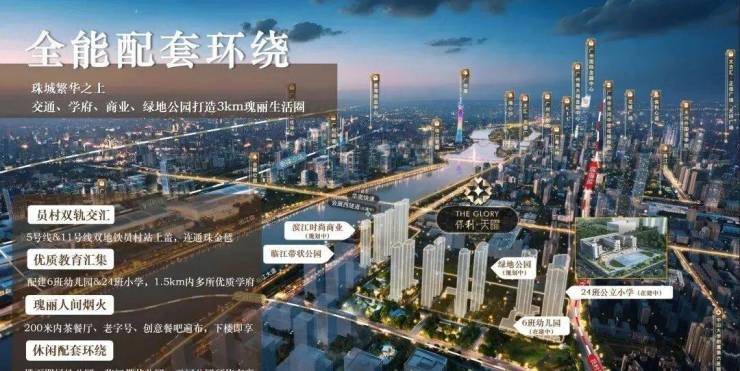 全维路网—临江大道、花城大道、过江隧道连接珠金琶;便捷地铁—员村站上盖,5号线三站珠江新城站,11号线1站即达琶洲;