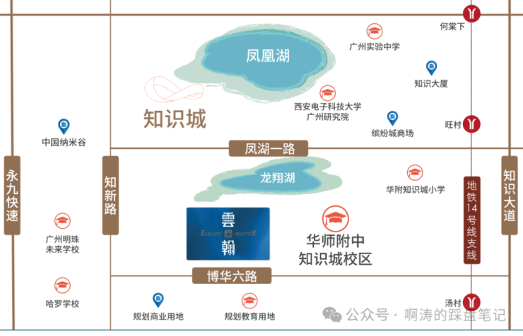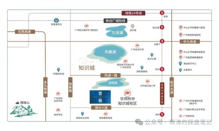 项目距离华附知识城校区仅一路之隔(汤兴一路),真正的“目送式”教育环境。华附知识城校区是黄埔区截至目前投资规模最大、技术标准最高的教育建设项目,总投入超28亿。