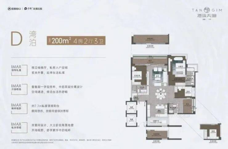 多样化的产品布局和户型设计 海珠天珺项目提供多种户型选择,包括朝向主导的轻奢产品、景观主导的豪宅产品以及奢华大平层户型,满足不同家庭结构和需求。产品在设计上强调空间的可变性和灵活性,适应二孩家庭或三代同堂家庭的多种功能需求,为业主提供个性化的居住选择。