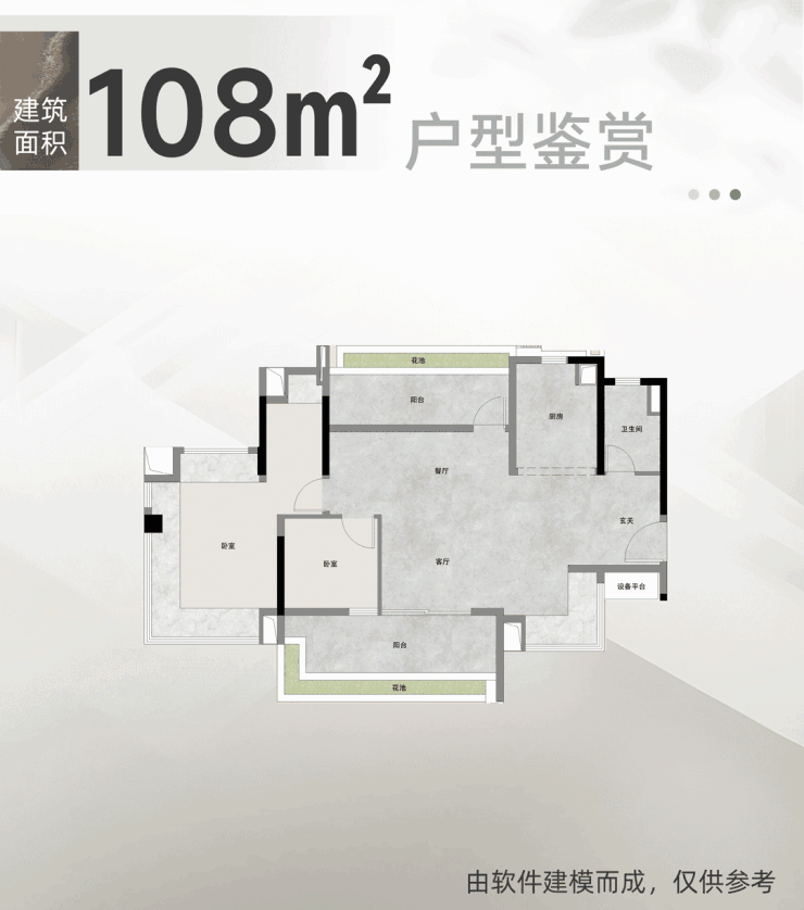 建面约108㎡户型,光是交付的大横厅,通过打通次卧,就能变身三面宽超级横厅,解锁接近20种生活方式表达。