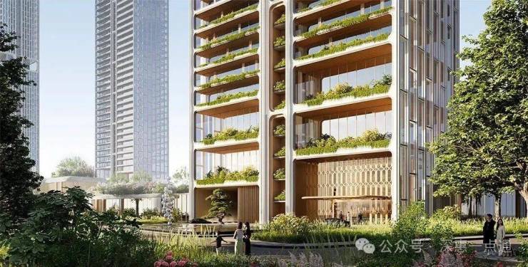 其设计以“竹韵”为灵感的外立面,搭配垂直空中花园体系,不仅每层都有空中院落,还设置了星空会所、架空泳池等共享空间,将传统围合感与现代美学完美融合。