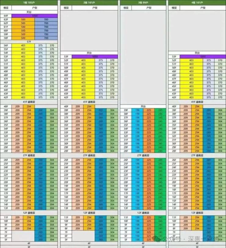 超高区(58层起,200米以上):约500-700㎡顶级大平层。