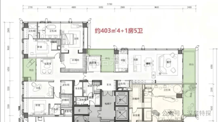 · 1050㎡顶奢大平层:位于顶楼的Penthouse,堪称深圳住宅的巅峰之作,堪比世界级豪宅。