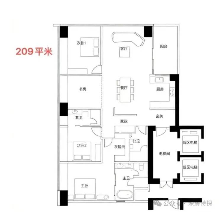 低区(5层起,150米内):约209-304㎡四房以上大户型。