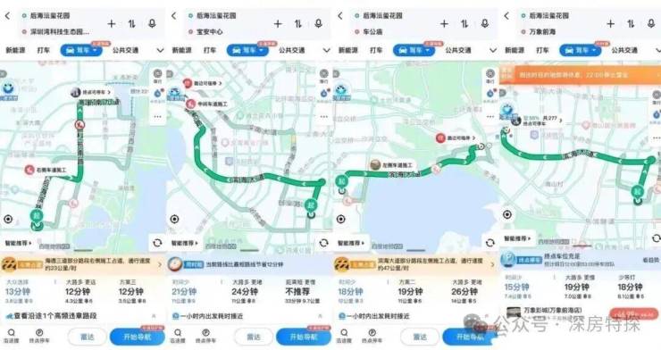 自驾:周边分布有多条高速/快速路及区域主干道,如西侧是后海大道,北侧是滨海大道、南侧是东滨隧道,去往南山科技园13分钟,去往前海、福田、宝中大概在15-20分钟。