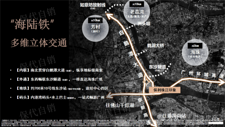 🔹【地铁】 直线距离约约700m10号线东沙站(预计25年开通),零换乘直达珠城CBD;约1.3km11号环线(2024年12月已开通)畅达中心五区