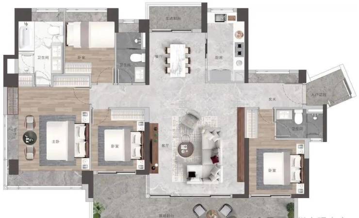 双主套三卫布局,轻松容纳大家庭,多代同堂其乐融融