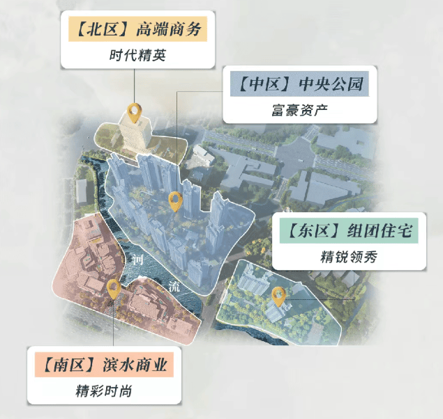 东区为住宅组团,有滨水园林,近地铁和商业,有精英要的奢享及高效;