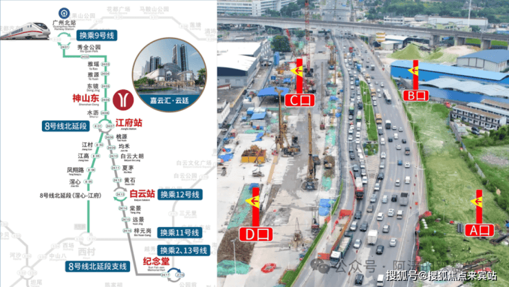 •地铁8号线北延段神山东站(在建中);1个站白云、5个站广州北、12个站到越秀区.