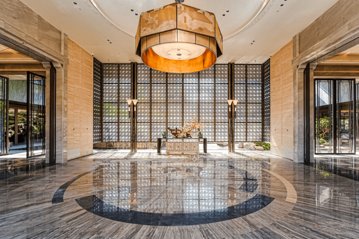大堂设计深得岭南名园“余荫山房”之遗韵,一脉相承的不仅是形制,更是那份绵延深厚的家园余荫。