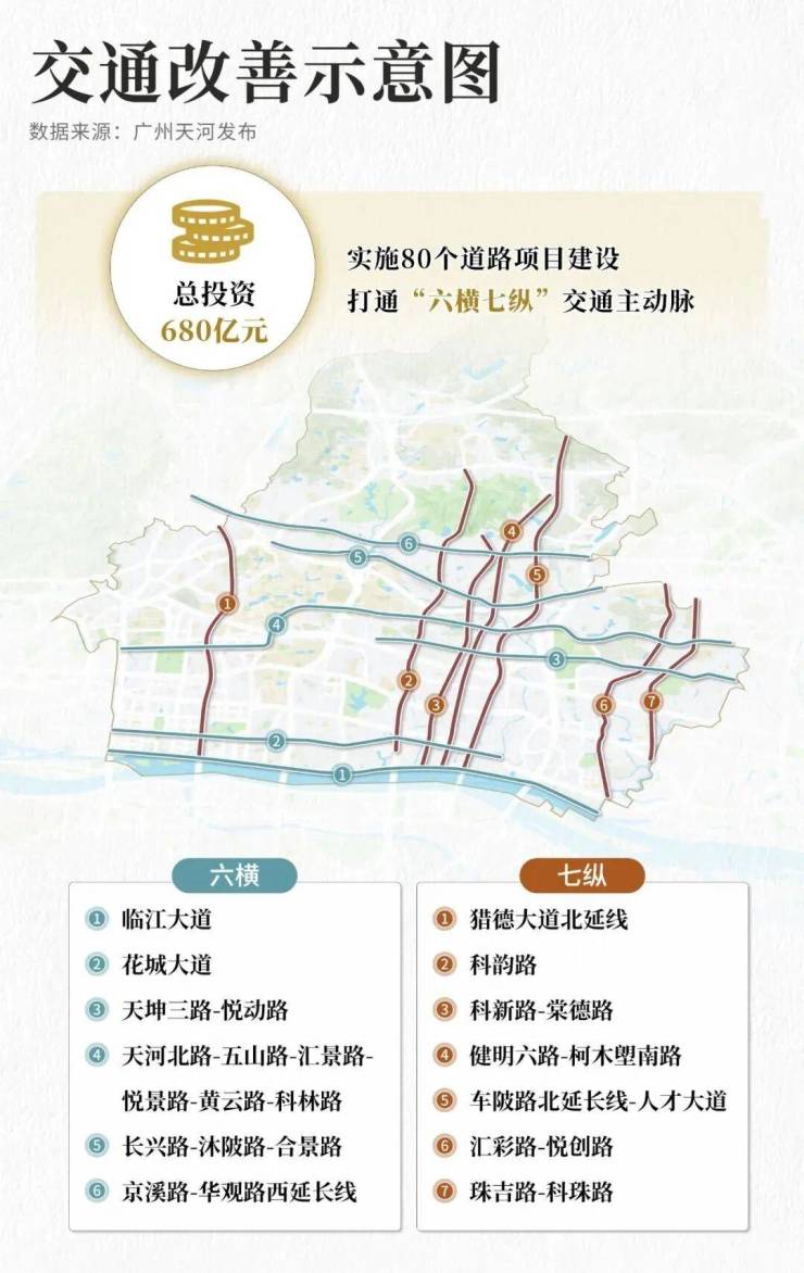 总投资680亿元,实施80个道路项目建设,打通“六横七纵”交通主动脉。