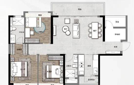 超6m超宽景观阳台,享大夫山湖头排景观;全屋飘窗面积全赠送,双阳台面积半赠送,实用率超80%