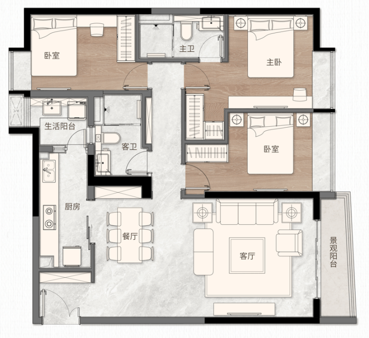 ㎡三房两卫,127 ㎡三房两卫,144 ㎡四房两卫