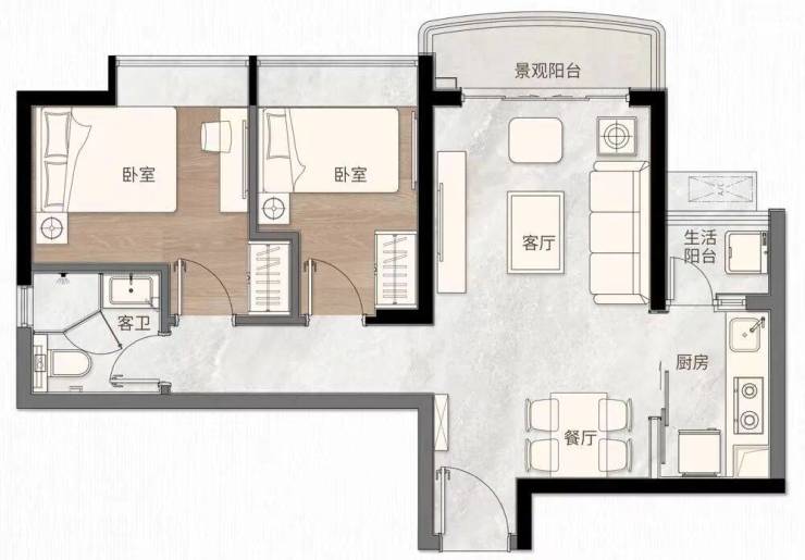 💥69㎡两房两厅一卫