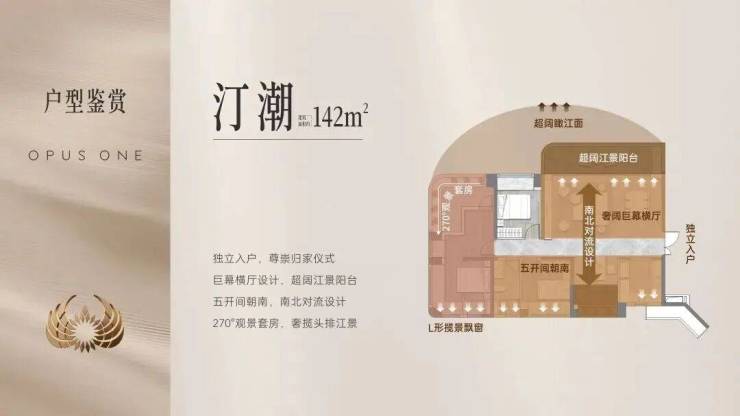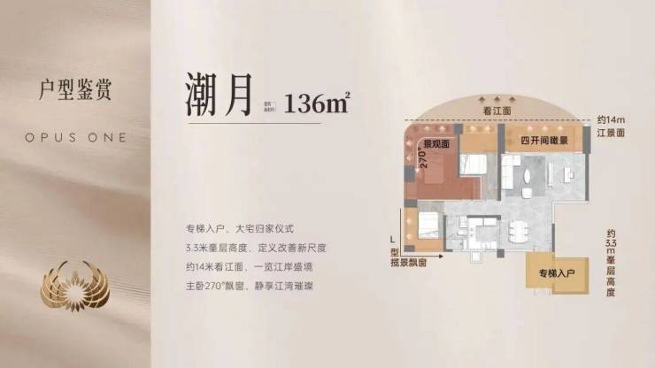 ◦ 楼栋45°偏转+板楼布局,高低楼层均享江景。