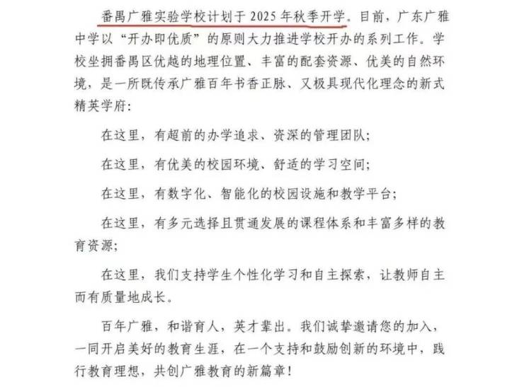 该校预计2025年9月开学,由广东番禺中学统一管理,也是广州第一所全课程改革实验学校。