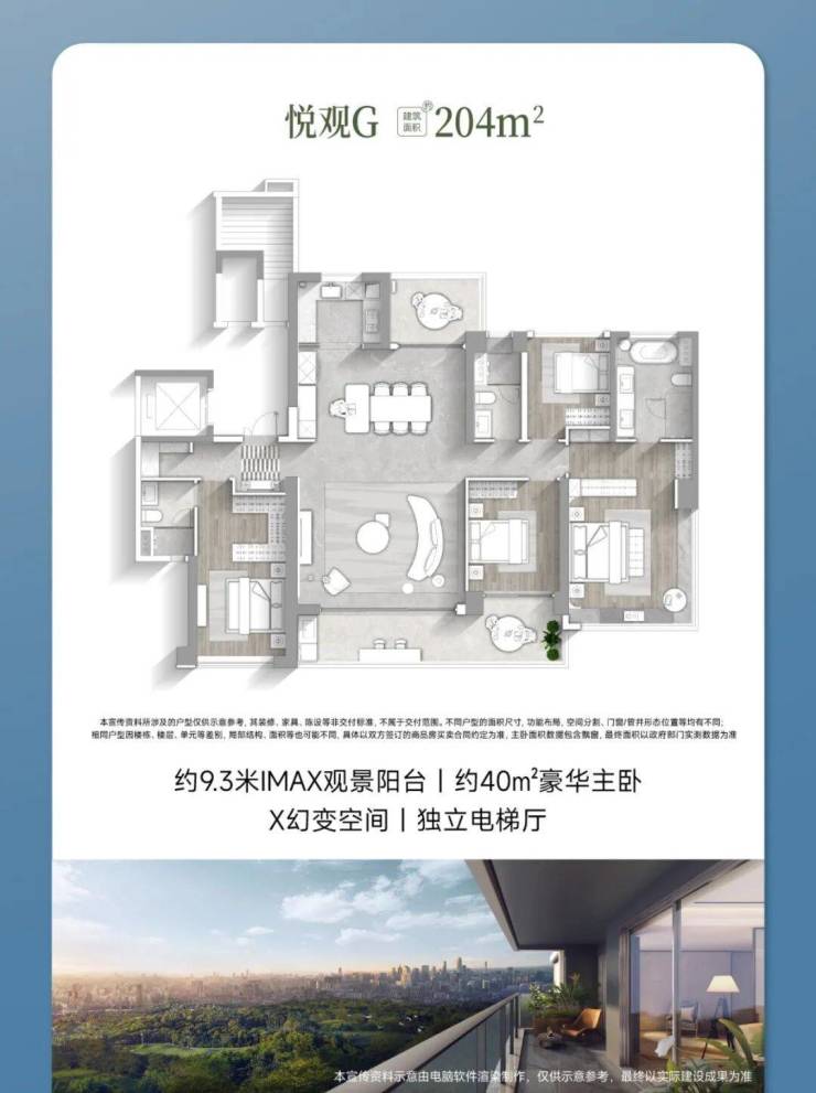 LDKG一体化设计,同享约9.3米南向IMAX观景阳台,约40㎡豪华主卧套房,静谧休憩,惬意起居,X幻变空间,多元共享,悦变生活更多想象,独立电梯厅,延续悦系仪式,私享入户尊崇归家