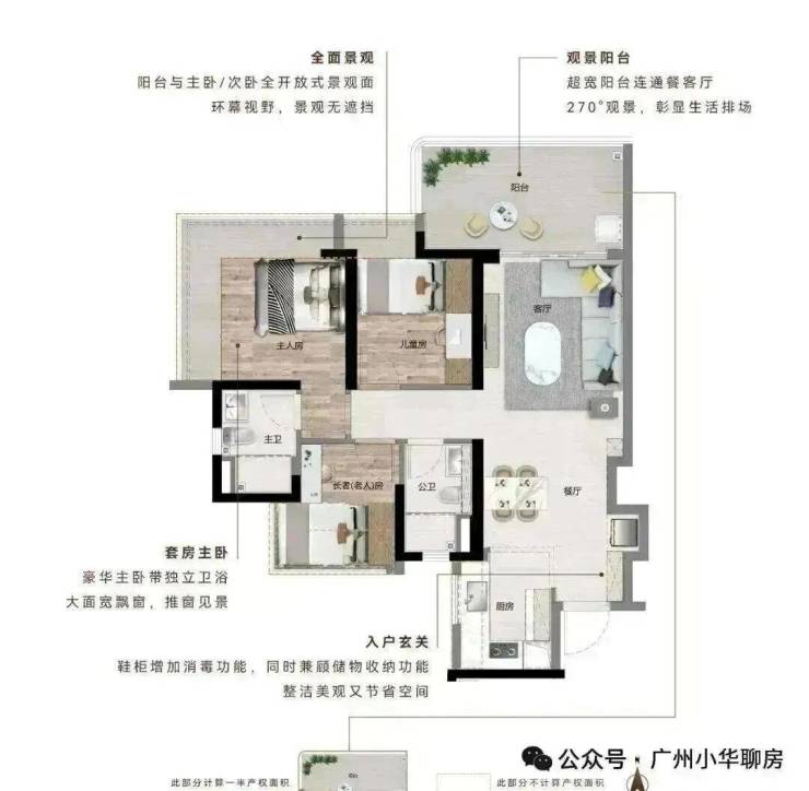 三开间朝南|12㎡宽阔阳台|超广角江景视野|270°主卧飘窗