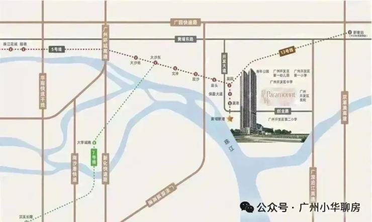 项目距离地铁站大约800米,从黄埔新港站出来,走大约12分钟就能到达。对业主来说,可以一线直达珠江新城,日常通勤非常方便。