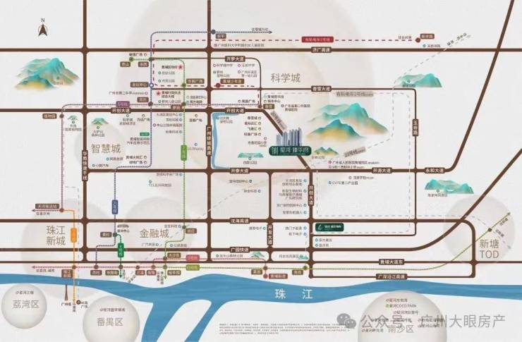 项目东临约3000亩自然山体,西瞰约1350亩创新公园,双山环绕,如同天然隔音屏障,更将带来约20倍珠江公园的负氧离子。