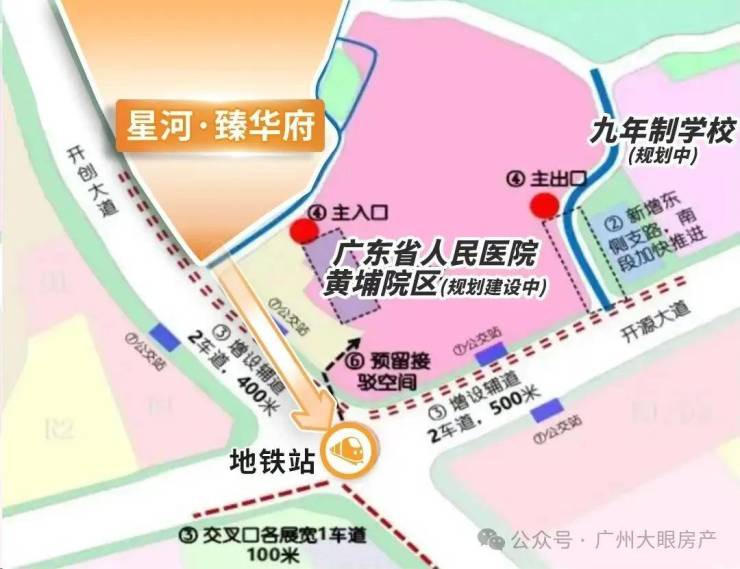 目前项目周边有2家三甲医院。在项目东侧还规划了广东省人民医院黄埔分院,初步预计2028年底前建成,2030年可投入使用。(目前正在进行环评公示,具体开业时间以官方公布为准)