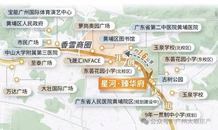 萝岗万达、奥园广场、飞晟汇在内的300万㎡醇熟商圈;周边近邻:宝能演艺中心、黄埔图书馆、科技馆等丰富文体生活配套群。